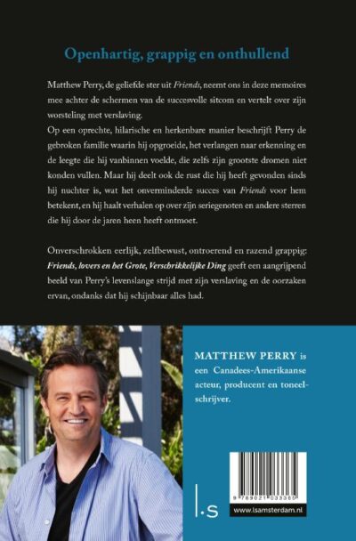 In Friends, lovers en het grote verschrikkelijke ding neemt Friends-ster Matthew Perry (Chandler Bing) ons mee achter de schermen van de succesvolle sitcom en zijn worsteling met verslaving. Het zijn openhartige, grappige en onthullende memoires met een krachtige boodschap van hoop en volharding. In een buitengewoon verhaal dat alleen door hem verteld kon worden, neemt Matthew Perry de lezers mee naar de soundstage van de succesvolste sitcom aller tijden, terwijl hij vertelt over zijn persoonlijke worsteling met verslaving. Openhartig, zelfbewust en verteld met zijn kenmerkende humor beschrijft Perry levendig zijn levenslange strijd met de ziekte en waardoor deze werd gevoed, ondanks dat hij schijnbaar alles had. Onverschrokken eerlijk, ontroerend en hilarisch: dit is het boek waarop fans hebben gewacht.